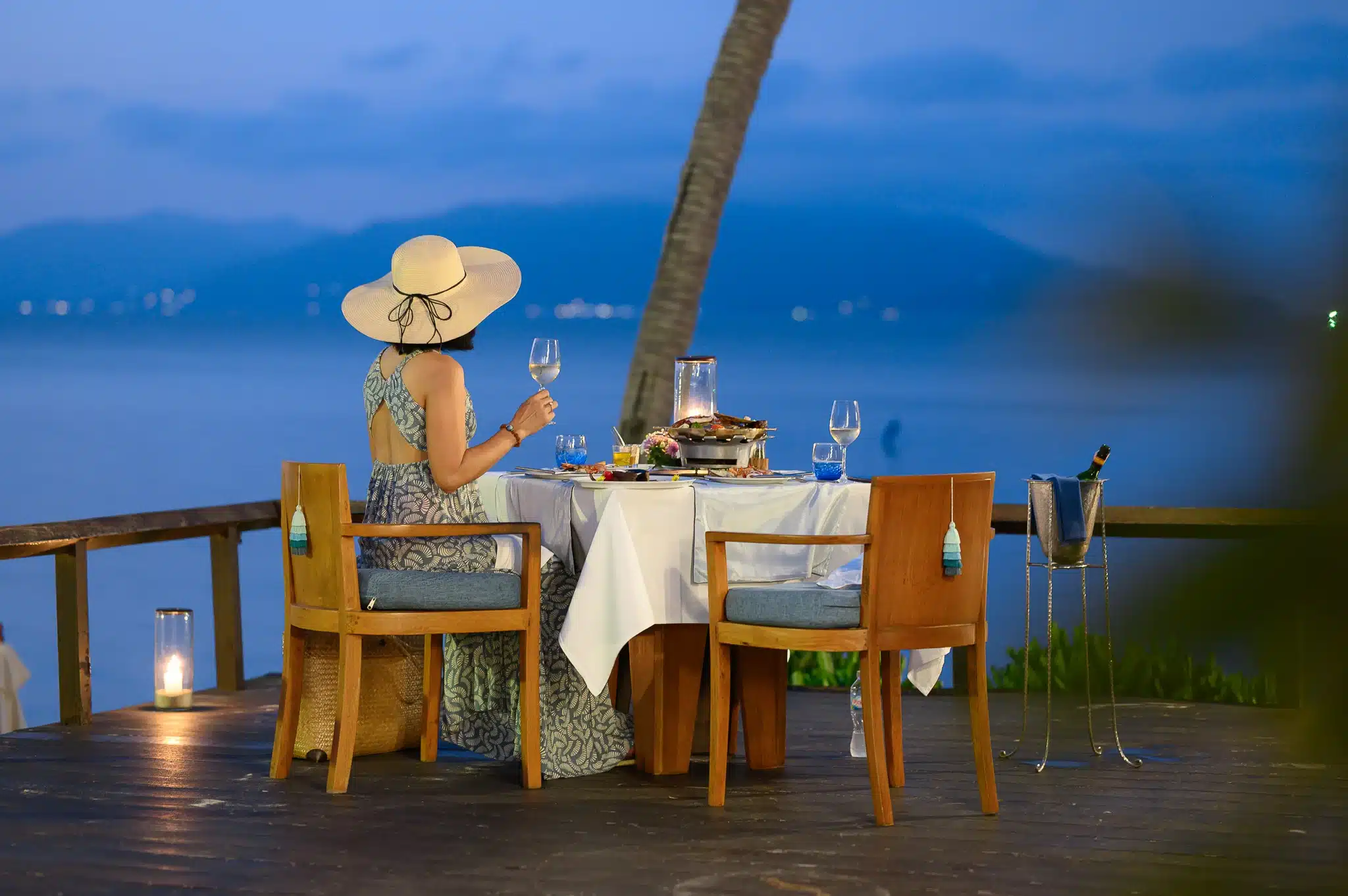 The Sea View Bar at Melati Beach Resort & Spa lets the guests enjoy the ultimate luxury experience at their all-inclusive resort with a swim-up bar. The bar, styled in traditional southern Thai fashion, offers a laid-back tropical vibe. As guests swim up to the bar, they can indulge in refreshing cocktails and delicious snacks while enjoying the breathtaking views. Melati Beach Resort & Spa provides the perfect retreat for travelers seeking relaxation, luxury, and impeccable service